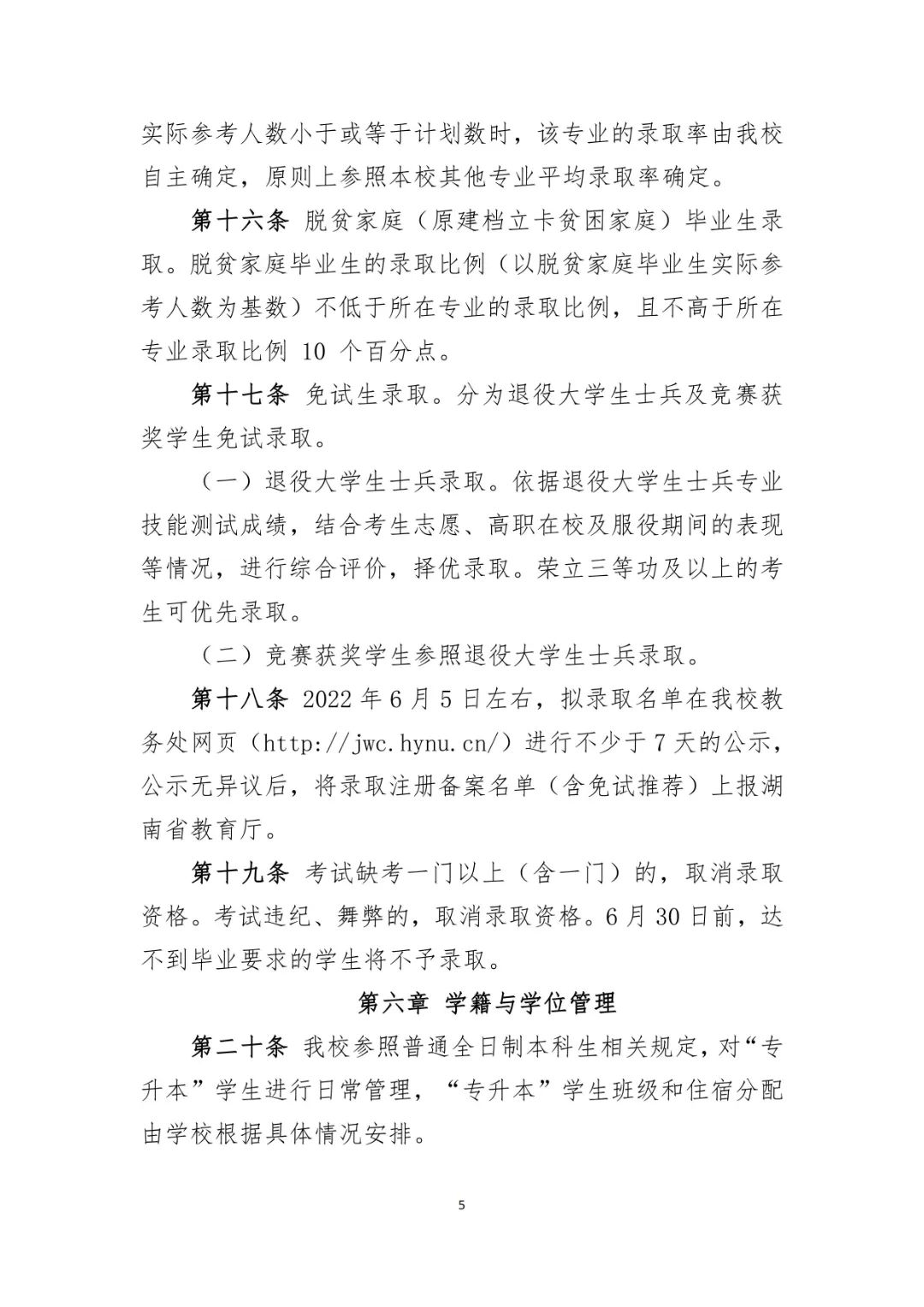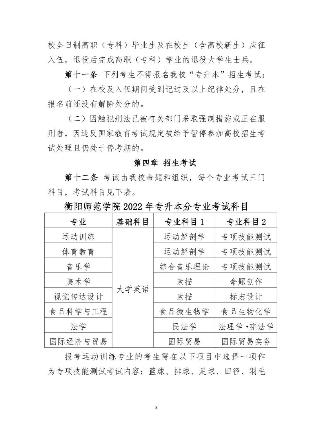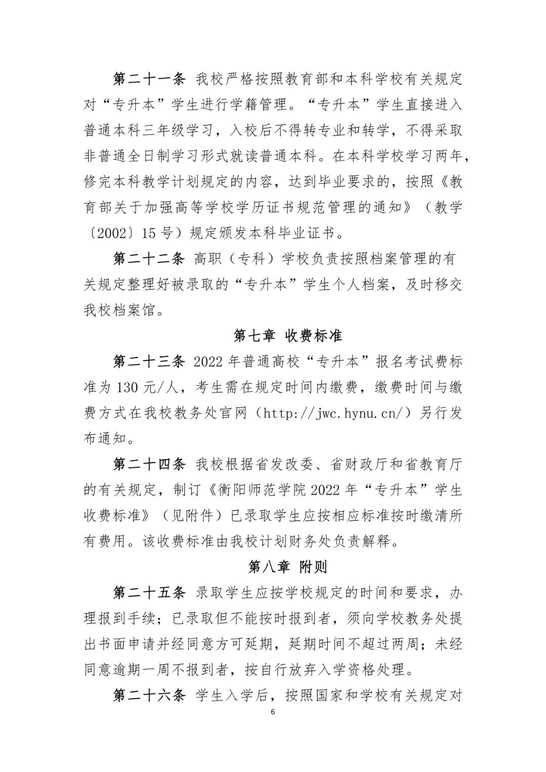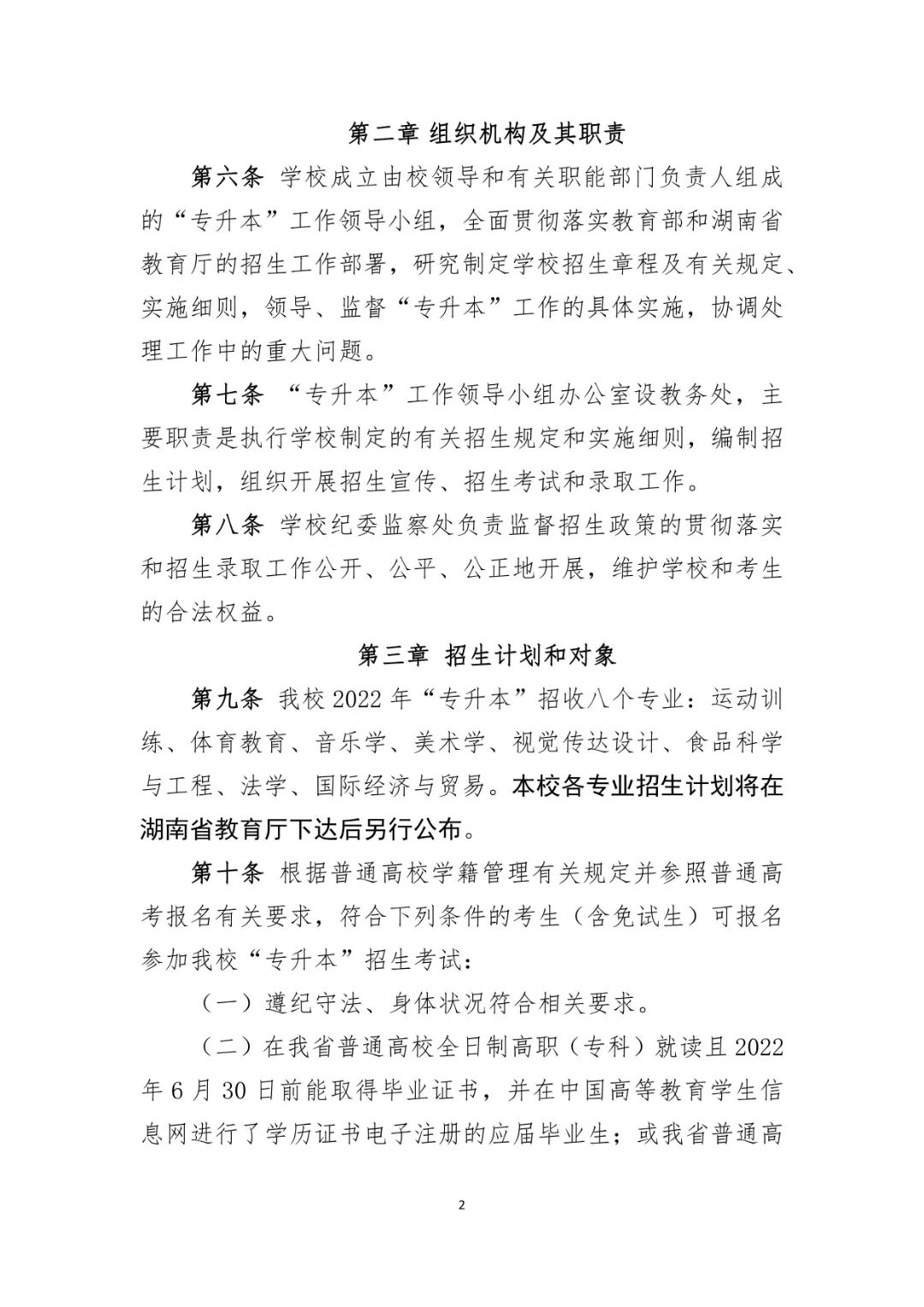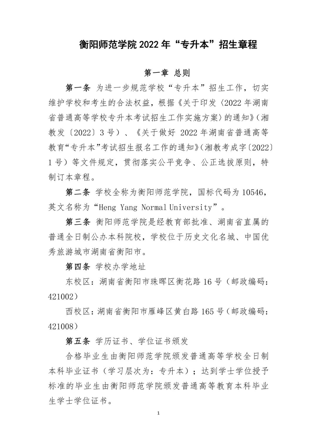 衡阳师范学院 2022 年专升本招生章程